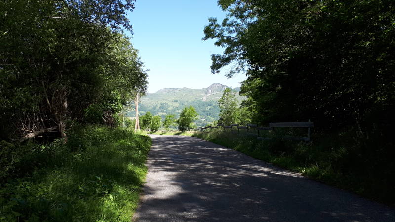 We vertrekken eens niet links vanaf het domein maar rijden onmiddellijk rechts via kleine wegjes en komen zo op een andere manier op het ondertussen gekende fietspad. Dit volgen we tot in Pierrefitte-Nestalas, hier even een klein stuk op de grote baan en slaan daarna rechtsaf. En zo mogen we al direct beginnen klimmen. Gelukkig aan gematigde percentages en nog in de schaduw onder de bomen. We rijden aan een rustig tempo langzaam omhoog door slaperige dorpjes zoals Saint-Savin en Sireix. Na ongeveer 1,5u fietsen komen we in het dorpje Estaing zelf. Hier stoppen we even om iets te eten en drinken.