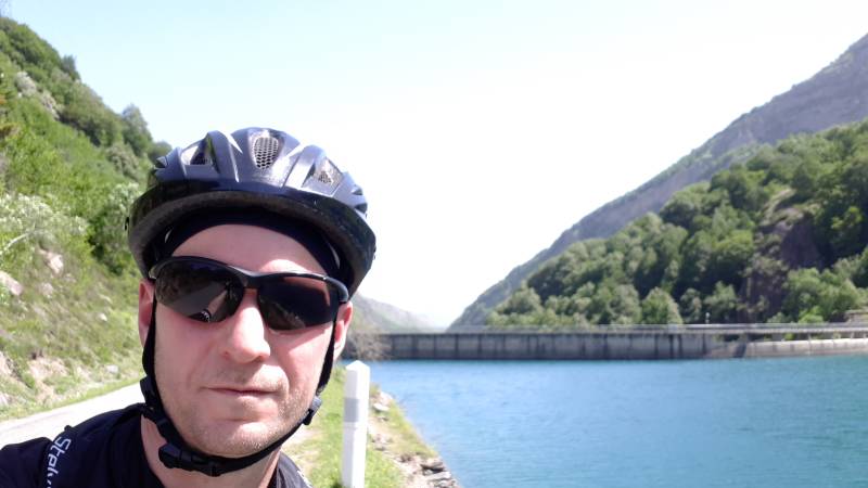 Helemaal aan het einde van het meer kan je iets eten en drinken in Le Bistro Tech. Je moet er wel een steil opritje voor omhoog klauteren. Hier zitten we dan, uitkijkend over het meer, stilletjes te genieten. Veel mooier wordt het echt niet meer. Je moet er wel cash betalen want enige vorm van sateliet ontvangt is er niet. Zelfs geen GSM signaal! Nu goed, nadat we ons energiepeil voldoende hebben bijgevuld, kunnen we aan de lange afdaling beginnen richting Argelès-Gazost. Het is ondertussen ondraaglijk warm geworden, zeg maar heet. Zelfs in de afdaling voel je de warme lucht langs je lichaam glijden. Nu geen probleem, het is toch alleen nog maar bergafwaarts. Voor vandaag geen zotte inspanningen meer. In tegendeel, we stoppen nog in het centrum op het terras van Bar d'Azun voor een verfrissend drankje. Hier zie ik tot mijn grote spijt dat mijn GPS heel de afdaling vanaf Lac de Tech niet meer heeft geregistreerd! Dus daarboven was ook al geen GPS signaal meer! Gelukkig zal ik later van Johan, de IT'er onder ons, zijn GPS opname krijgen zodat ik toch nog de volledige rit in Strava en Relive kan steken! En zo hebben we vandaag uiteindelijk een rit van 62km met 1300hm afgewerkt. En dat bij 36°C! Maar ik had wel gelijk, deze onbekende parels waren uitzonderlijk mooi! Wauw!