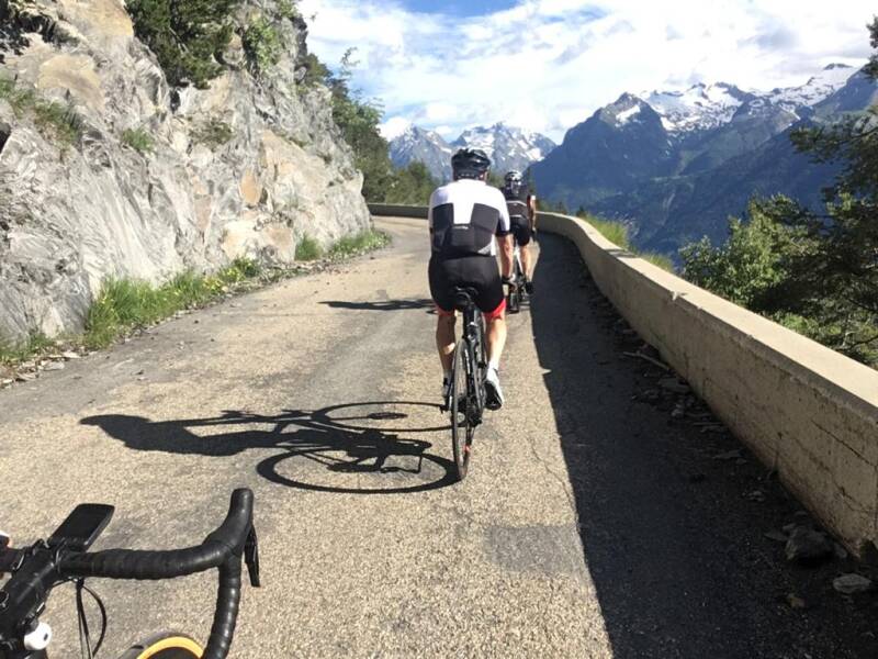 We komen aan een splitsing, houden 2x kort na mekaar links aan en mogen terug beginnen klimmen. We volgen de weg richting Villard-Reculas. De eerste kilometers volgen een 8-tal haarspeldbochten elkaar aan snel tempo op. Zo is het leuker klimmen dan gewoon rechttoe rechtaan omhoog. In de bochten kan je even van tempo veranderen en dat breekt het klimmen. Voorlopig hebben we nog weinig uitzicht wegens de dichte begroeiing. Maar van zodra we het dorpje naderen begint het mooie uitzicht zich te ontvouwen. We komen op een 'cliff road' en hebben een spectaculair uitzicht over de vallei onder ons. Hier moeten de nodige foto's genomen worden.