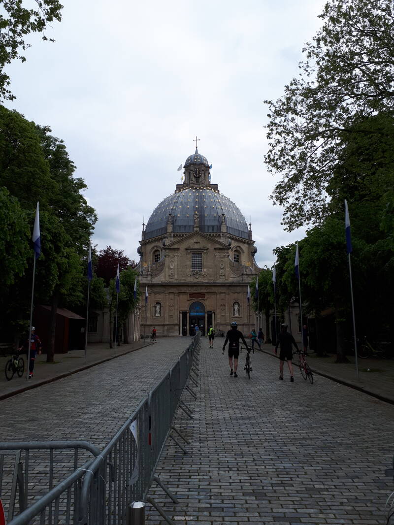Normaal gezien kan je in normale zomerse omstandigheden in de dreef net tegenover de ingang van de abdij lekkere ijsjes eten maar nu spijtig genoeg niets te zien. Wel mooi om door te fietsen. Ondertussen is het al middag en voelen we een hongertje opkomen. We rijden door het centrum van Zichem zelf waar we even halt houden aan een klein bakkertje. Amai, dat gaat smaken! Met de aangevulde energie is het nu nog maar een klein stukje tot we voor de Basiliek Onze-Lieve-Vrouw van Scherpenheuvel staan. Ook hier mag je mits de nodige voorzorgsmaatregelen gewoon binnen gaan maar omdat het hier wel redelijk druk is besluiten we dat toch maar niet te doen. Enkele foto's van de buitenkant zullen moeten volstaan.